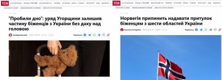 Порівняння заголовків ТСН щодо рішень Угорщини та Норвегії щодо надання притулку українським біженцям чітко демонструє цю тенденцію. Емоційно забарвлені формулювання та негативні коннотації, використані стосовно Угорщини, створюють у читача образ країни, яка байдужа до страждань українців.