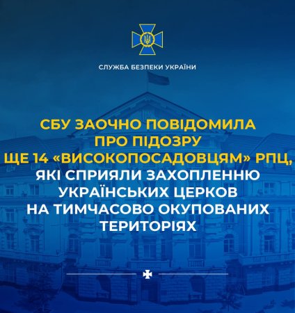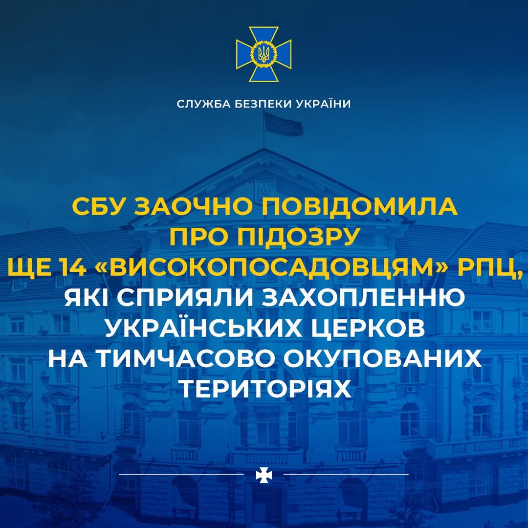 СБУ заочно повідомила про підозру ще 14 «високопосадовцям» рпц, які сприяли захопленню українських церков на тимчасово окупованих територіях