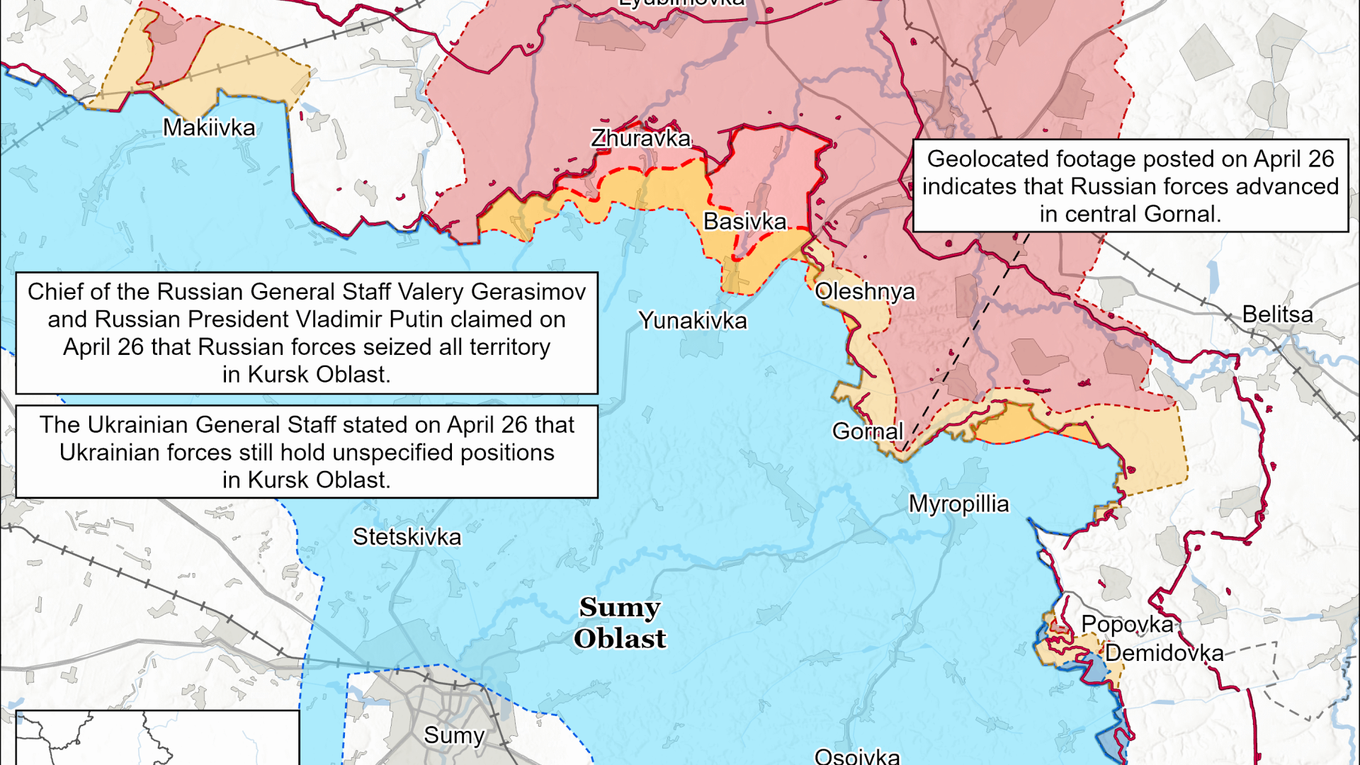 26 квітня 2024 – Український рейд у Курську область у серпні 2024 року дозволив відтягнути частину російських елітних підрозділів, зокрема десантників (ВДВ) та морську піхоту. Однак довгостроковий вплив цієї операції на фронтову динаміку залишається невизначеним.