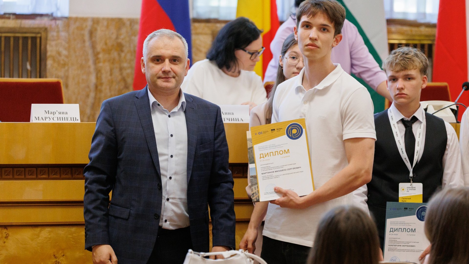 🎉 Відтак Андрій Андрійович узяв участь у нагородженні переможців IV етапу олімпіади з мов національних меншин.