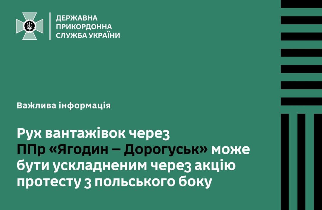 ☝️На даний час оформлення вантажних автомобілів в обох напрямках, як в бік України, так і в бік Польщі по напрямку пункту пропуску «Ягодин – Догогуськ» поновлено у звичайному режимі.