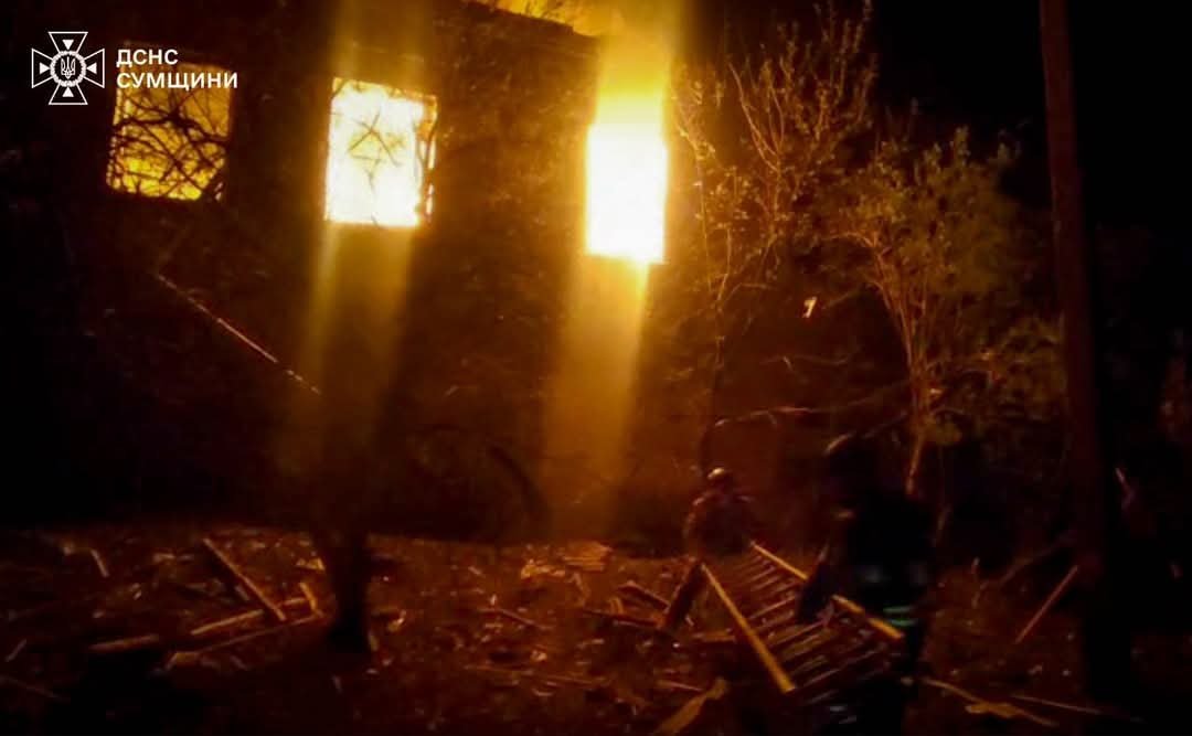 Сумщина: вночі рятувальники ліквідували пожежі, які виникли через російську атаку