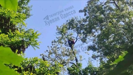 Одеса стала свідком неординарного інциденту: чоловік, намагаючись уникнути зустрічі з представниками Територіального центру комплектування (ТЦК), виліз на верхівку дерева заввишки з п'ятиповерховий будинок. Подія, що розгорнулася на вулиці Іцхака Рабіна близько 5:30 ранку, швидко набула розголосу завдяки відео, що активно поширюються в одеських Telegram-каналах.