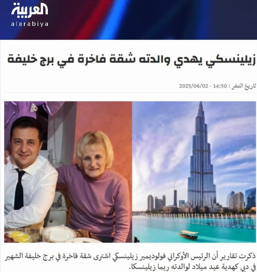 Повідомлення про те, що мати Президента України Володимира Зеленського нібито володіє квартирою в Бурдж-Халіфа вартістю 3 мільйони доларів, широко розповсюджуються в деяких арабських ЗМІ. Однак ці заяви є дезінформацією та фейковими новинами, часто пов'язаними з прокремлівською пропагандою.
