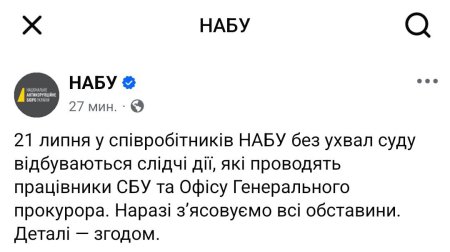 Про це повідомляють українські телеграм-канали та ЗМІ з посиланням на власні джерела у силових структурах. За наявною інформацією, обшуки відбуваються у різних регіонах країни. Частину детективів НАБУ підозрюють у державній зраді, корупції, а також у веденні бізнесу з Російською Федерацією — країною-агресором.