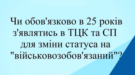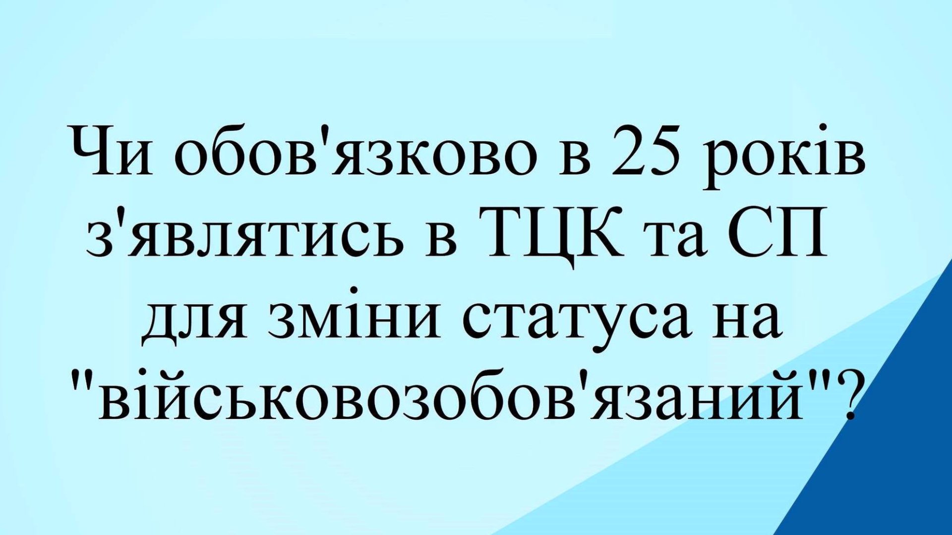 ✅ Відповідь на головне питання: ні, у 25 років особисто йти до ТЦК та СП для зміни статусу не потрібно.