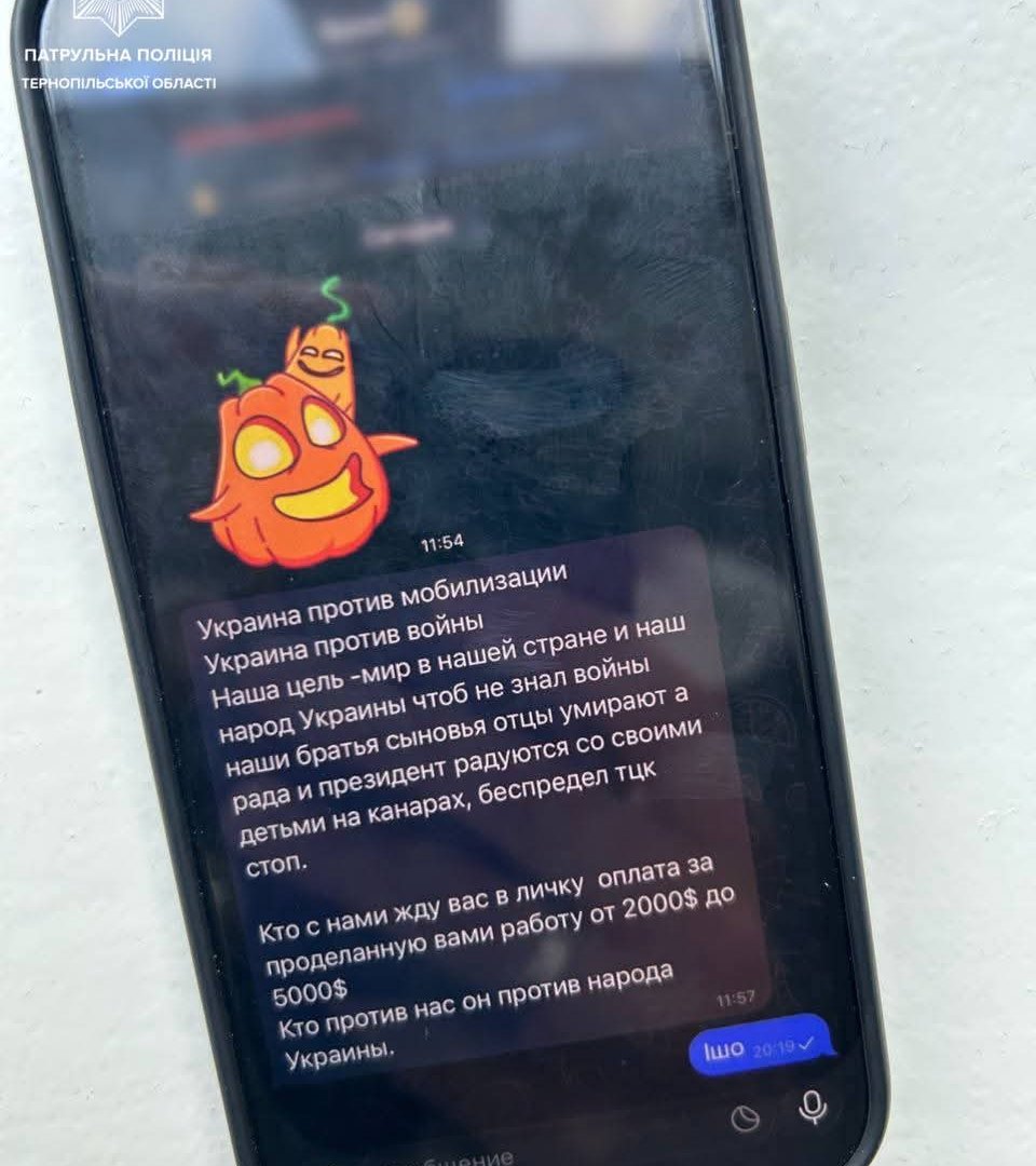 На фото, що циркулює у мережі (мається на увазі скріншот повідомлення), видно, як автор заклику поширює антидержавні гасла, які дискредитують державну владу, закликають до виступів проти мобілізації та пропонують грошову винагороду за «виконану роботу» (ймовірно, за поширення деструктивної інформації чи збір даних).