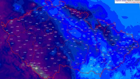 Минула ніч стала однією з найхолодніших цього року. У гірській місцевості Шумави температура знизилася до -25,8°C.