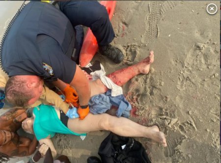 Рятувальники почули її крики про допомогу у воді – і витягли на берег, де їй надали першу допомогу. Також їй наклали джгут на ногу, щоб зупинити кровотечу до прибуття швидкої допомоги.