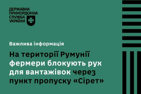 Близько 14.00 від представників прикордонної поліції Румунії отримано інформацію про поновлення блокування румунськими фермерами та аграріями руху вантажних транспортних засобів у напрямку пункту пропуску «Сірет», що знаходиться навпроти українського пункту пропуску «Порубне».