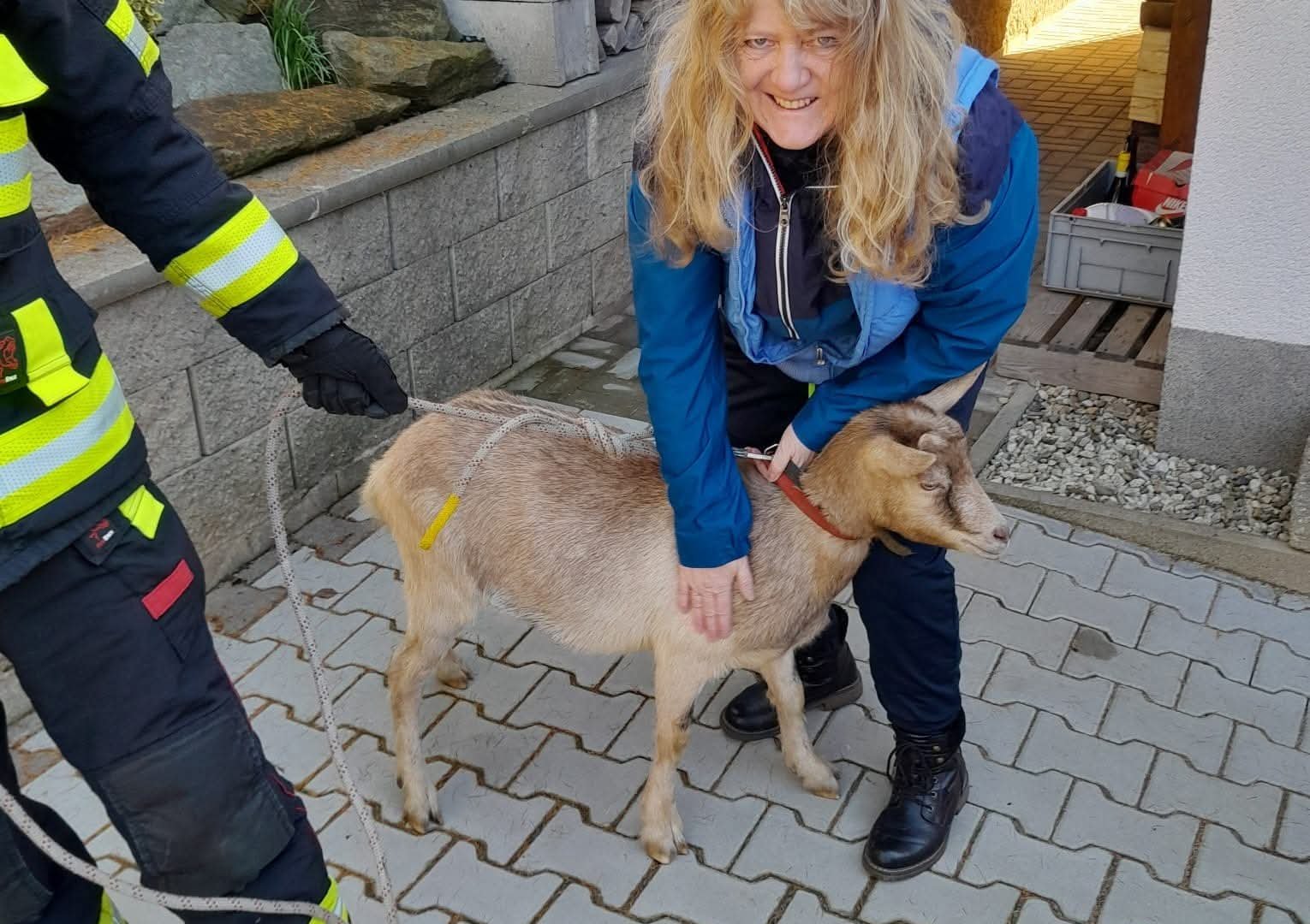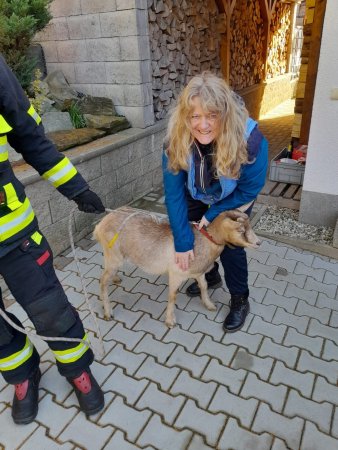 Коза залишилася неушкодженою і спокійно спустилася на землю. Фото надали пожежники Ліберецького краю.