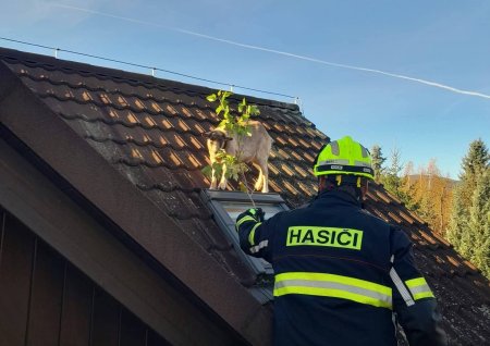 У Чехії пожежникам сьогодні довелося знімати козу, яка залізла на дах